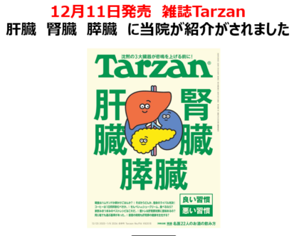 12/11発売 雑誌Tarzan 肝臓・膵臓・腎臓 に当院が紹介されました