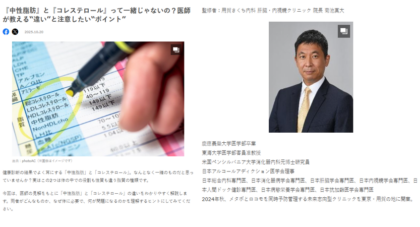 『中性脂肪』と『コレステロール』って一緒じゃないの?医師が教える“違い”と注意したい“ポイント” WEB記載