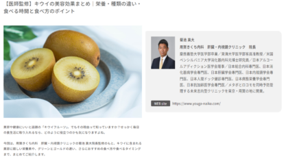 毎日を豊かに楽しく過ごすための情報を提供するライフスタイルマガジン Saji+(さじたす)さんから、キウイの美容効果について、記事監修依頼をうけました。是非ご覧ください