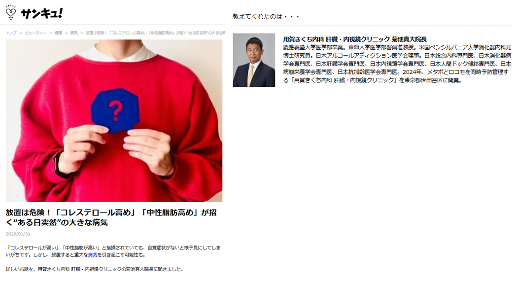 今すぐできる、素敵なくらしのアイデアが満載。リビング、ライフスタイルに役立つ情報雑誌サンキュから、脂質異常症について、記事掲載依頼があり、執筆しました。是非ご覧ください。