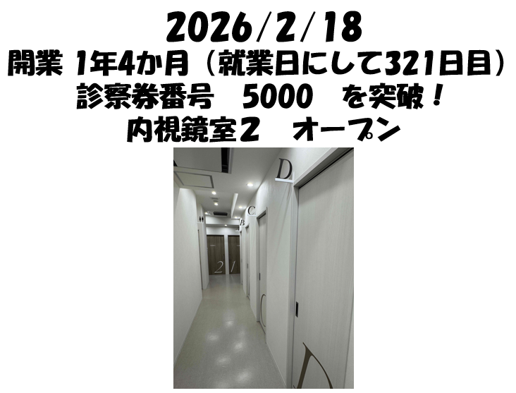 もう一点が、それにあわせる形で、内視鏡室2番をオープンいたします。患者さんのご要望により応えられるように準備してまいりました。多くの患者さんにご利用いただけるように努力してまいります。今後ともよろしくお願いいたします。